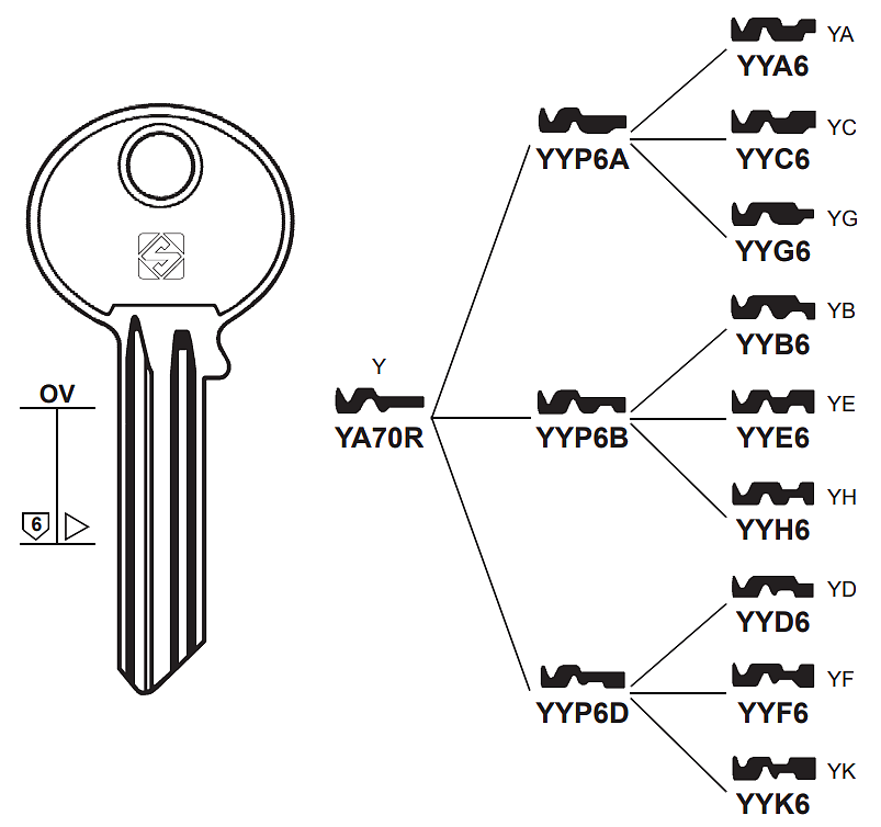 Silca Cilindersleutel staal YYB6