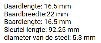 Kenmerken Kenmerken Type Dopsleutel Afmeting (steeldiameter) 5 - 5,5 mm Sleutelbaard Blind profiel Dubbelbaard Klanten die dit product gekocht hebben, kochten ook Silca Cilindersleutel staal PHF16R (SRA) YALE cilindersleutel Gemini 5 Pinkey series R5 Silca Autosleutel plastic kop staal KYM1P Silca Cilindersleutel staal KLE7X Silca Banensleutel brass MTK13RAP (76) Silca Cilindersleutel brass EU1R Silca Cilindersleutel brass RO68R Silca Cilindersleutel staal AKR8 Silca Cilindersleutel staal EU11R Silca cilindersleutel staal MCE1 Silca Blokjessleutel nikkel AX17EP Silca Boringsleutel brass KLE10R