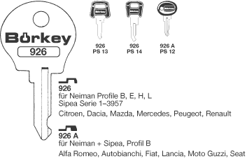 Borkey 926A Cilindersleutel voor SIP. NEIM. B