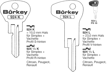 Borkey 948½L Cilindersleutel. voor CORBIN ETC.