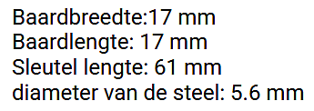 Kenmerken Kenmerken Type Dopsleutel Afmeting (steeldiameter) 5,5 - 6 mm Sleutelbaard Blind profiel Dubbelbaard Silca Kluissleutels